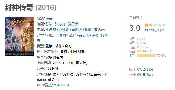 可是观众到影院观看后纷纷吐槽,在各个影评网上《封神传奇》的口碑也是跌入谷底。