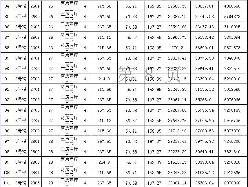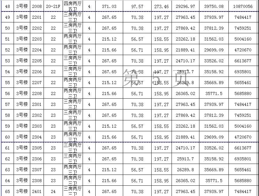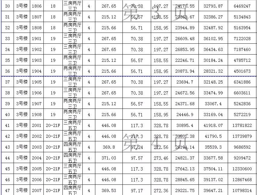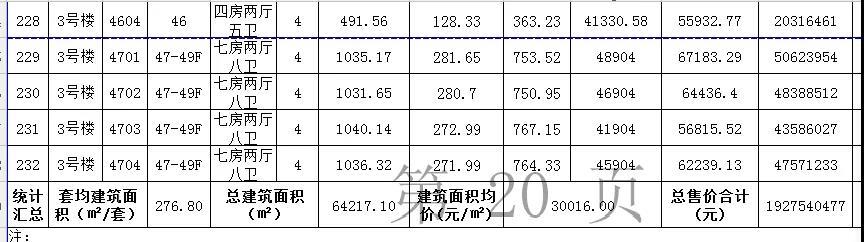 其中七房两厅八卫总计有4套,都位于47-49层,应为复式单位,且建筑面积都超过千平,是国贸中心的楼王单位。