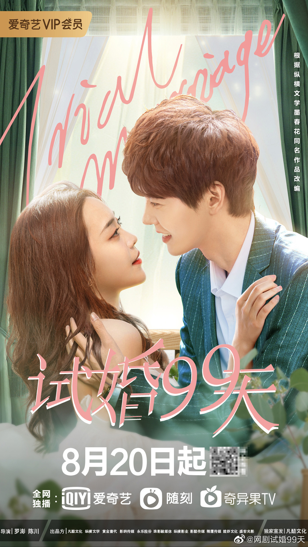 《试婚99天》是由凡酷文化、影纳传媒、纵横文学、永乐股份出品的网络剧,由罗澎、陈川联合执导,陈泽、王珮寒、李砚领衔主演,宗沐一、陈思宇、苏宇航主演,赵燕国彰、白希特别出演的电视剧。将于8月20日中午12:00于爱奇艺视频独家上线。
