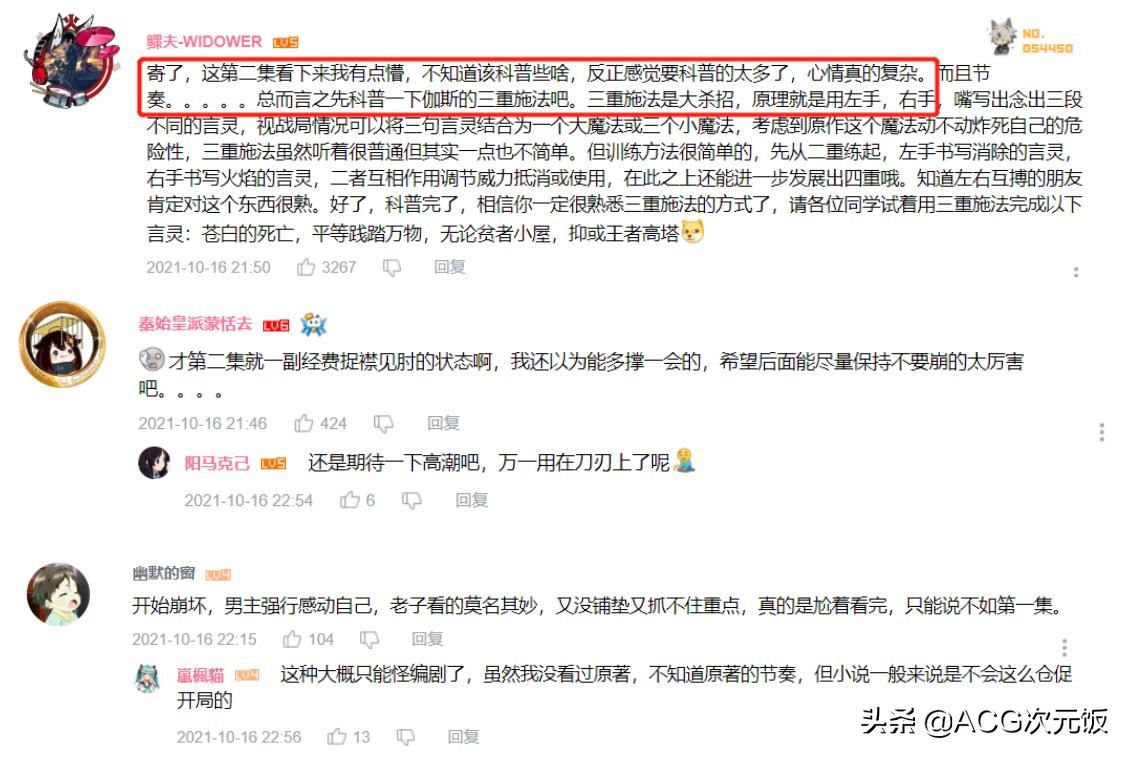 观众的观看体验不好,并不是制作公司的问题,而是部分原作党的问题。一些看过原作的原著党,打着“科普剧情”的名义,纷纷在评论区和弹幕区剧透。比如第二集爷爷出手攻击男主时,就有人说“他是真的想杀男主”等等。动画党本来还好奇接下来的剧情走向,猝不及防看到了原作党的剧透,好奇心顿时被毁了一半。