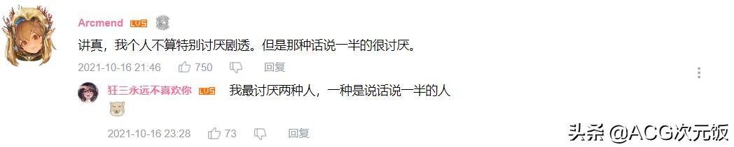 其实看过这部番的小伙伴,都有着不同的感受,并不能给出确定的好或坏的评价。只是这才播出到第二集,剧透现象就如此严重,氛围也变得不和谐,对作品来说真不是什么好事。那么各位小伙伴看过这部番了吗?对它的剧透现象是什么想法呢?