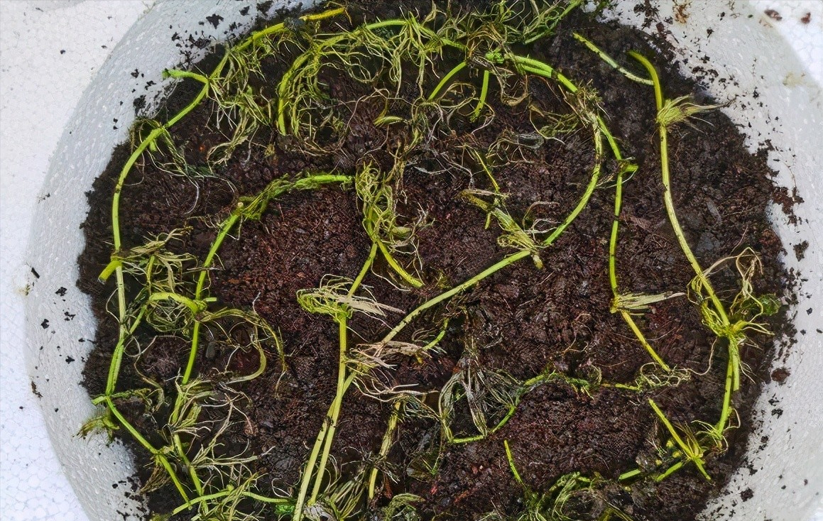 气,通通都剪掉。看看里面的根系是否太多,如果太多,可以多分上几盆。把根系整理一下,平铺在花盆中。然后,最好用疏松透气的土壤在上面覆盖四五厘米,放在太阳充足的地方,加足了水直接晒太阳就可以。