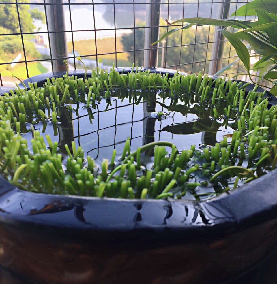 铜钱草虽然非常耐晒、耐热,但是它也比较耐阴,放在半阴的地方叶子长得会更大。有些朋友养铜钱草,总是养在室内半阴的地方,不给它晒太阳,其实这是非常错误的方法。养铜钱草就要使劲儿地晒,越晒叶子越大越浓绿,哪怕放在半阴的地方,叶子也能够长得巴掌大,又浓绿又饱满。