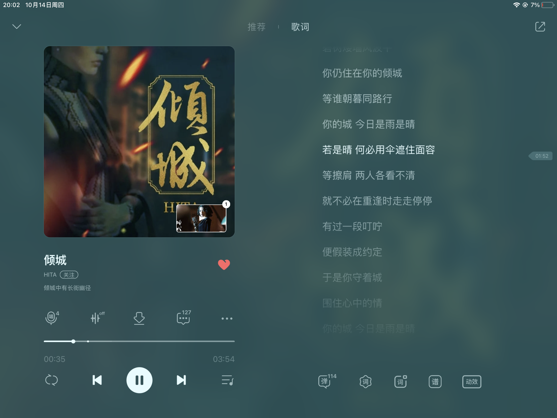 hita的《倾城》,伴随轻快的小调,女生娓娓道来,两座孤城相遇、相知、相离的故事,没有那么多大起大落,而是平凡中的顺其自然。