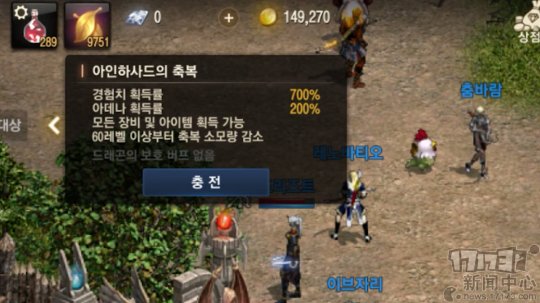对了。事实上登录也是需要花钱的。在《天堂m》中引起最大争议的系统,也存在于《天堂2m》中。该系统作为一种疲劳度系统,有和没有,对游戏的影响很大。爱因哈德的祝福(暂译),在持续期间,经验值获得率提升700%,游戏币获得率提升200%…只看这个介绍,就能知道这是有多重要了。