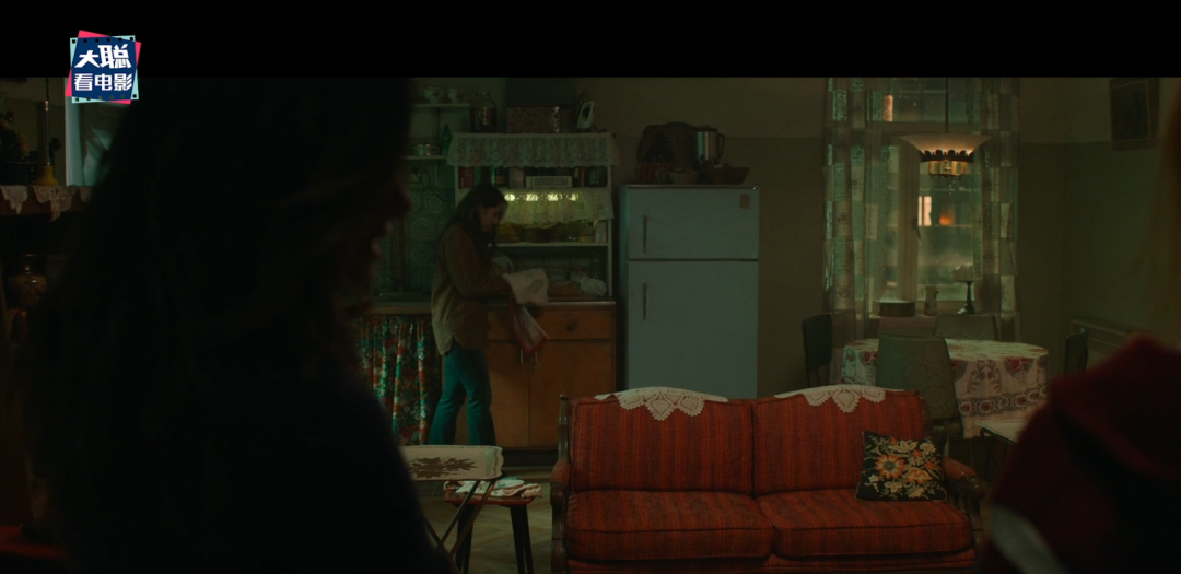 这场戏红色元素还是很多的,小旺达是红色的衣服,家中的沙发是红色的,电视机也是红色的。