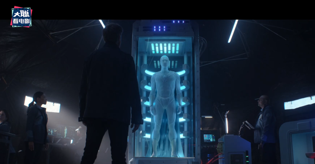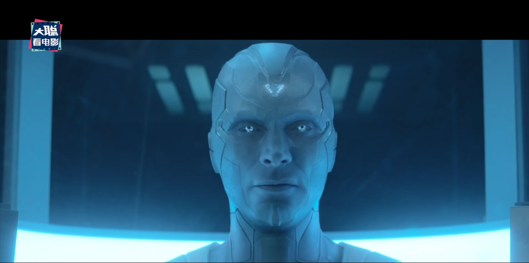 白幻视芯片和眼睛,都呈现出亮蓝色,在《复联2》中,妮妮解构权杖里的心灵宝石时,分析出来的颜色就是亮蓝色。