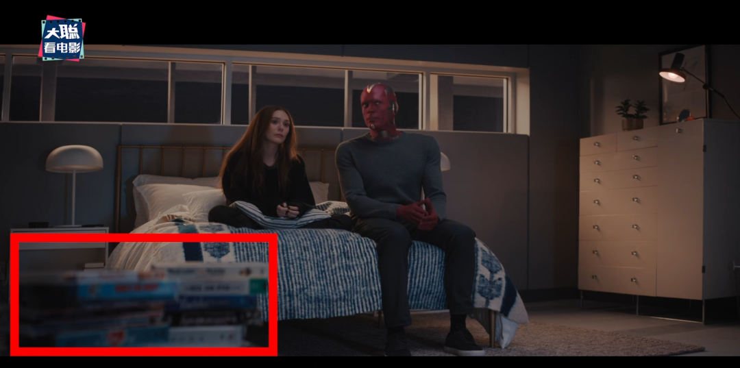 但虽然这么说,有个画面我们能看到,茶几摆着各种影集的光盘,这也说明旺达在复联基地和幻视相处的日子,看的美剧是最多的,也算是符合我之前的小猜想吧。