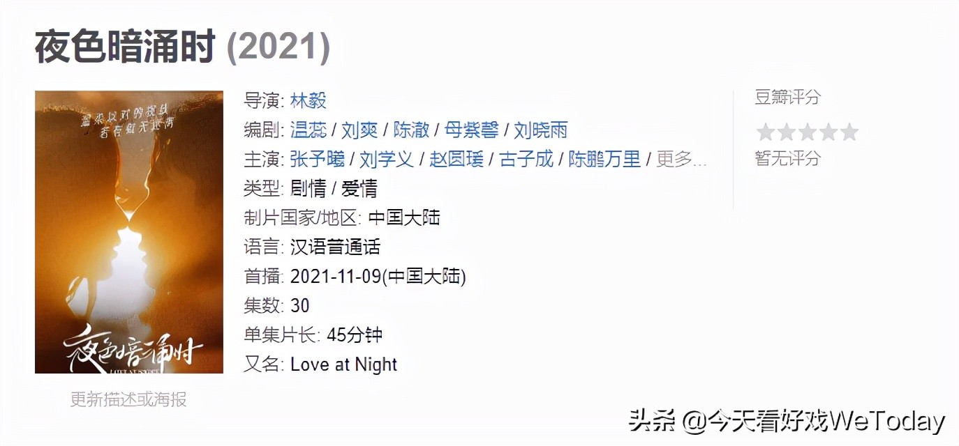 2021年真的不少土甜土甜的剧。《只是结婚的关系》《一见倾心》到这部《夜色暗涌时》,都是那种看着挺一言难尽,但看着看着,就看完了,还觉得“其实也还行”的小成本网剧。