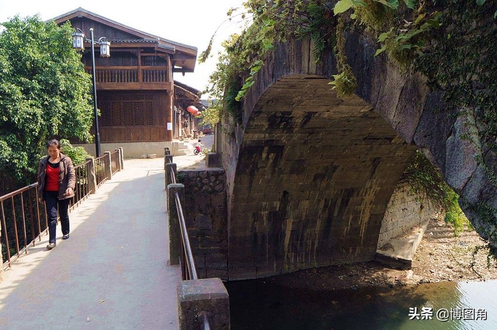 5、古朴的石桥,清澈的河水,加上青灰色的古民居,在绿树繁花的映衬下,便有了曲作家马致远笔下“小桥流水人家”的意境。它是大圩古镇著名景点。除桥本身造型优美、结构坚固、古朴雄壮之外,桥四周景色十分秀丽迷人。 博图角摄影师 周一渤