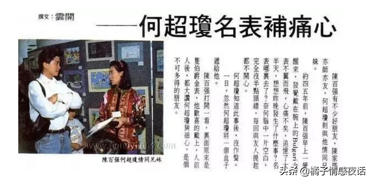 陈百强丢了一支价值数十万的名表,何超琼就给他买了一个同款手表。何超琼还成为了陈百强《深爱着你》的mv中的女主角。