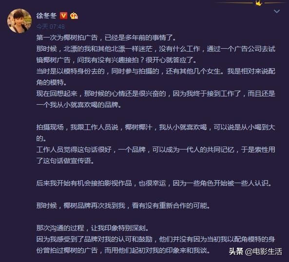 不少人提到徐冬冬这个名字可能没有什么印象,但是提到某椰汁品牌那句“我从小喝到大”的奇葩广告语就会想起包装盒上那个性感美艳的美女,而这个人就是徐冬冬。
