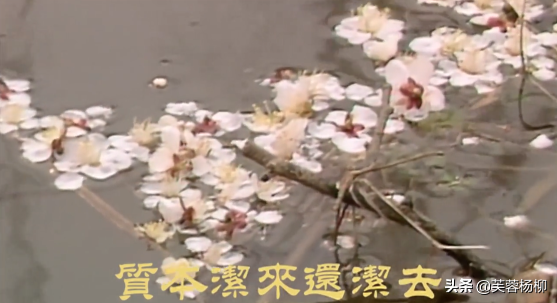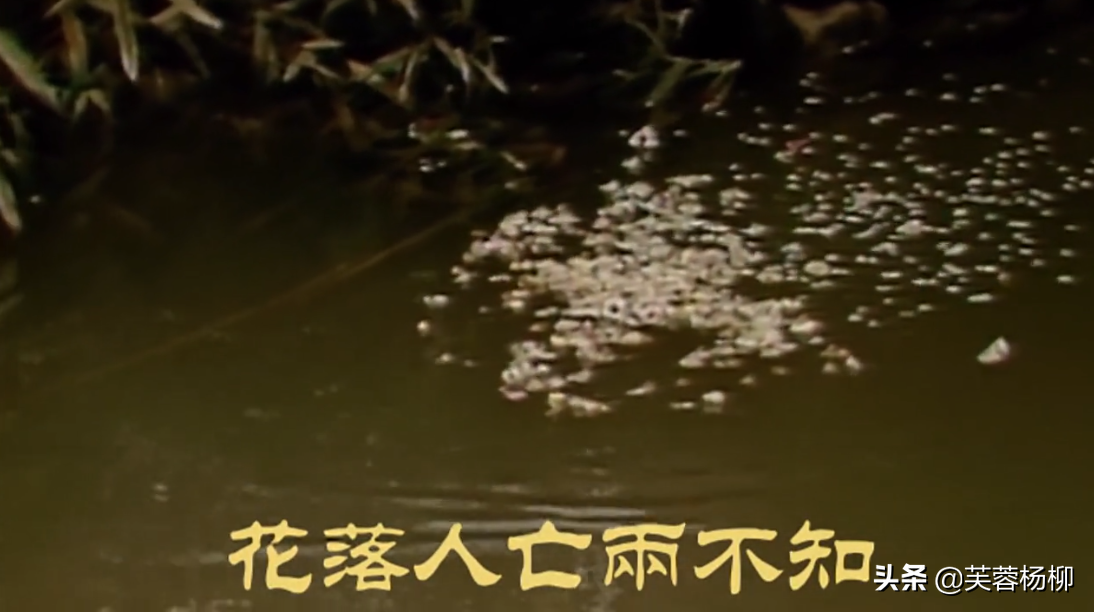 特别是恍惚间,宝玉兜着的花瓣,落入水中,是一种花自飘零水自流的感觉,和黛玉的“花落人亡两不知”是相同的意境。