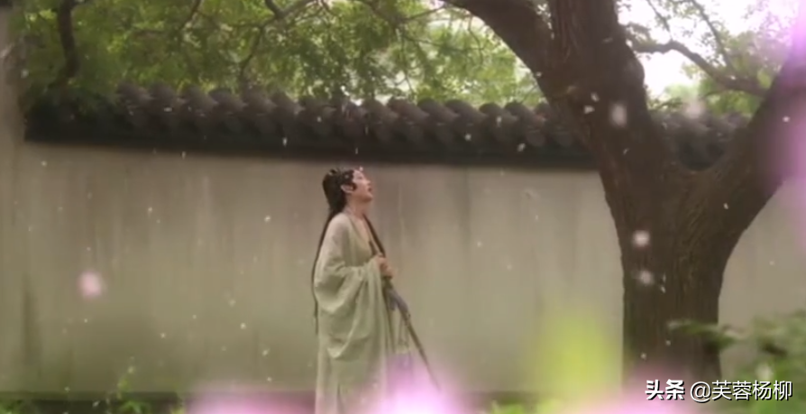 新版《红楼梦》呢?满树绿荫,没有一朵花朵,可是,空气中,一朵又一朵的花瓣粉粉飘落。