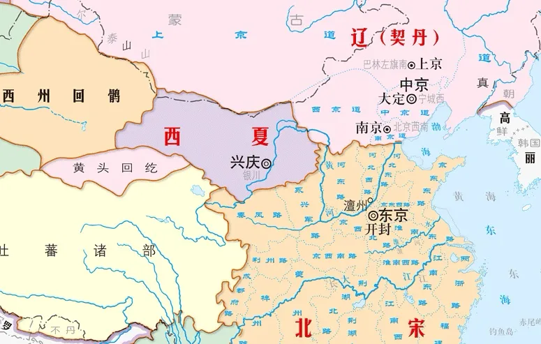 与宋朝前后对峙的是契丹和女真建立的辽、金政权。此外,在宋朝这几个政权夹缝中顽强生存的还有一个西夏国。
