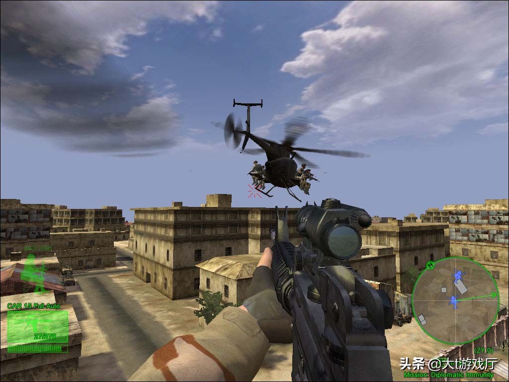 《三角洲特种部队》是当年最棒的特种兵题材,第一人称射击游戏,玩法也不仅仅是单纯的战斗和射击,而且每一关的任务关卡都完全不同,包括直升机作战、空降作战、水面作战、驾驶载具作战等等,游戏当中还加入现实战术元素,在任务开始前,可以选择所适应任务环境的装备武器,游戏在当年的画质虽然算不上顶级,但还是有很强的真实度。