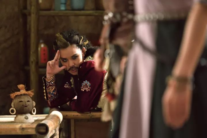 不得不提的是,在《降魔传》中郑恺堪称造型百变。一会儿变身唐朝大宫女,一会儿是蒲扇摇摇的降魔师,刚还摆个地摊卖大葱,转身又是超级赛亚人,头发抗鞋当武器。