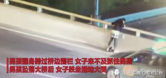 一辆轿车停在高架桥上,突然一个少年打开后座的车门跑出来,直冲着爬上高架桥,跳了下去,从驾驶位赶来的母亲离孩子只有一步之遥。