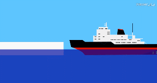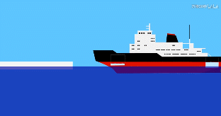 最后一种办法则相当“刺激”,破冰船会利用自身船舱里的水柜,先将水集中至船尾水柜,翘起船头,冲上冰层,再将水注回船头水柜,利用上万吨的重量压碎冰层。有时为了开辟足够宽的水道,还需要通过向左右舷水柜加水的方式改变重心,压出更宽的水道。此时硕大的破冰船,就犹如一个在冰面舞蹈的胖子(全方位海盗船预定,不难想象船员晕船的感受)。