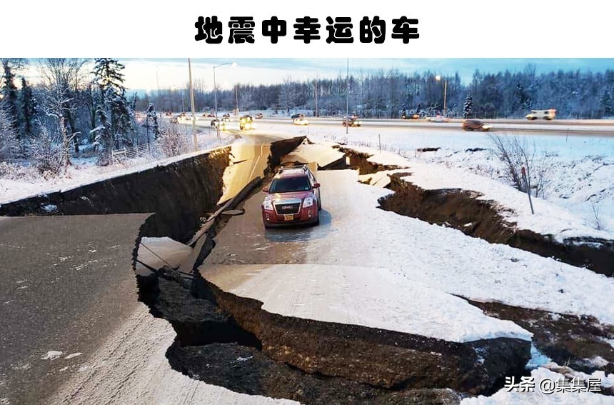 2018年11月,阿拉斯加连续发生了两场地震,当时,这辆汽车上的人们待在了极为安全的路段上。比较让人好奇的是,他们是如何离开汽车,拍下这张照片的呢?
