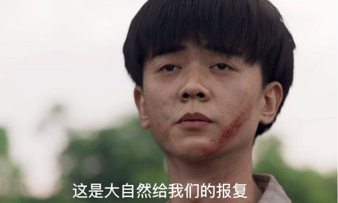 结尾时,幸存的三人刚逃出来,不是感慨老王牺牲自己救下几人,反而说“这是大自然给我们的报复”。