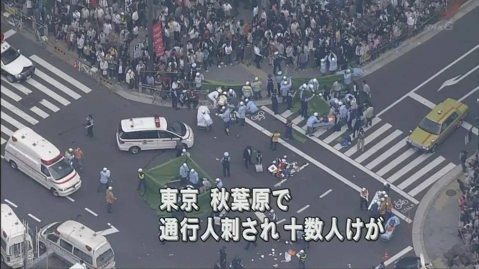 司机加藤智大下车后,不仅没有参与救援,更在两分钟内,刺伤12位路人。