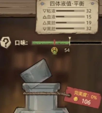 为配置合理的药剂共病人服用,玩家必须合理的放入药材以保证四体液数值平衡,在药剂有了优秀的品质后玩家还需考虑其味道如何,显然味道好的药剂会帮助玩家赚更多的钱。