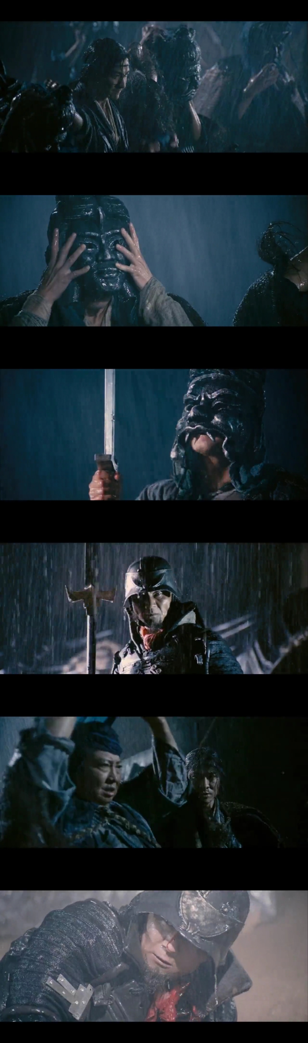 是夜,大雨如期而至,在夜色的掩趁下,常山组纵马冲进了曹营,他们戴上了铁制的面具,手起刀落间带起一片片红色的雨。