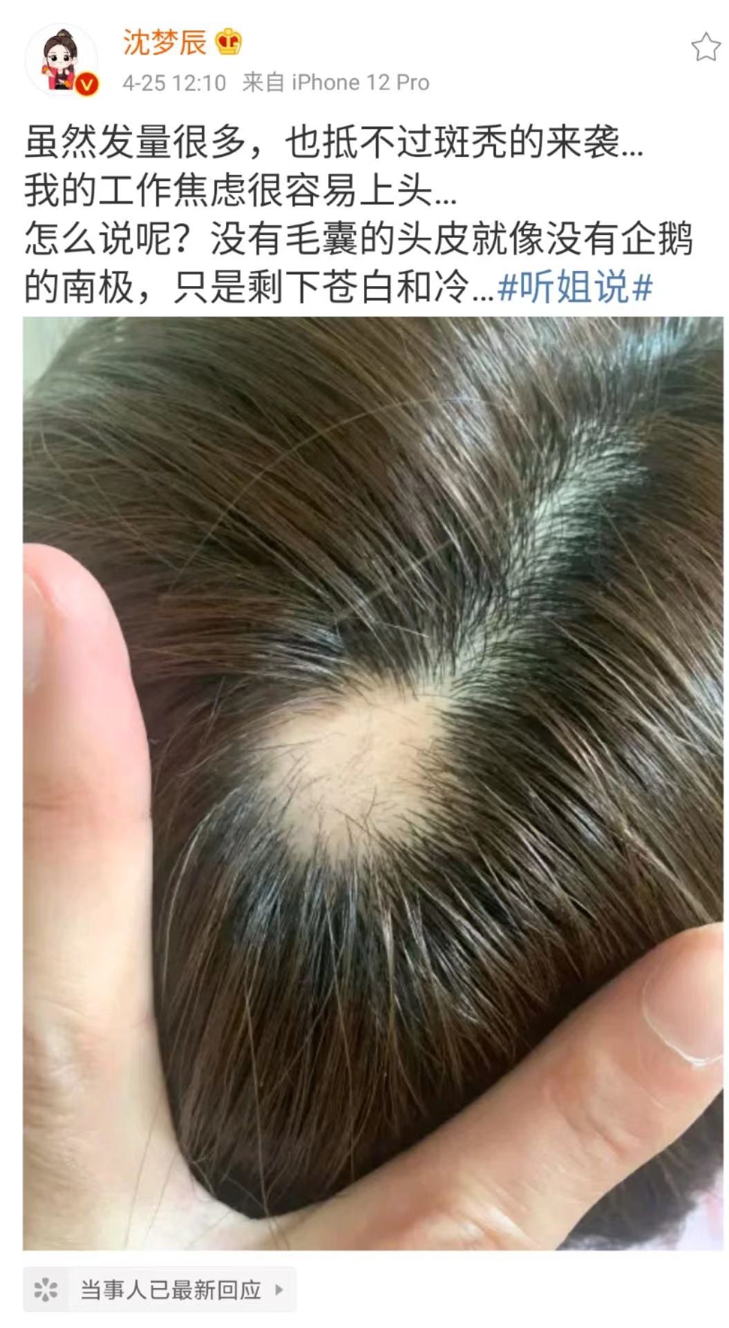 遇到“鬼剃头”的人还挺多的,明星都逃不过,湖南卫视女主持沈梦辰就中招了。