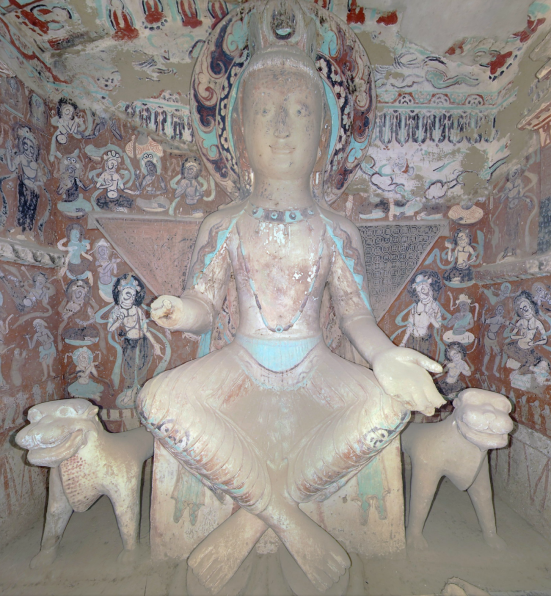 乐尊在敦煌主持开凿莫高窟第一口洞窟时,23岁的西域高僧鸠摩罗什(343-413年),正在身为舅舅的龟兹国王白纯的支持下,登上金狮子座,在龟兹国内讲经说法。