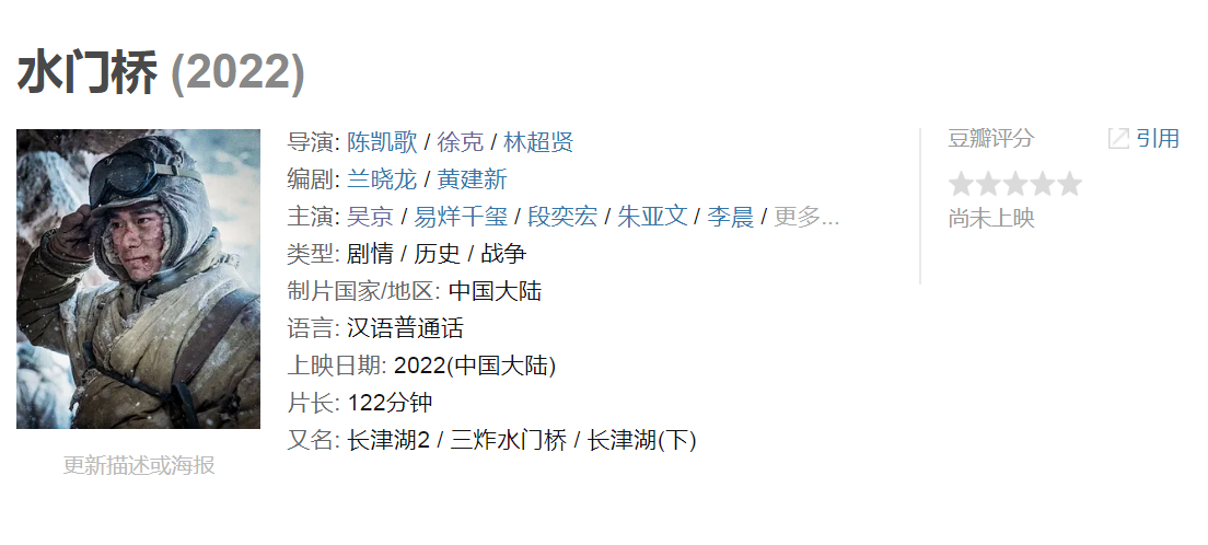 除了这部《水门桥》,张艺谋导演的《狙击手》也是引而未发。同为“抗美援朝”题材的作品,不知道这两部电影,是否会在相同的档期之内,展开票房搏杀。