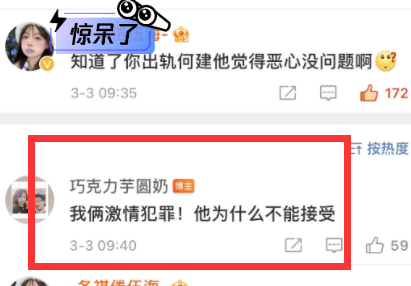 就在网友直言她出轨,张九南觉得恶心时,她情绪激动地回复网友:我俩激情犯罪,他为什么不能接受。