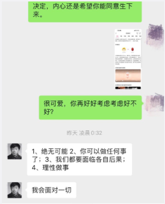 她还说她怀孕了,在孕4周的时候,张小波让她打胎。但考虑到自己已经30岁了,打胎伤害身体,也不知道自己以后能不能再怀上孩子,她决定将这个孩子生下来。