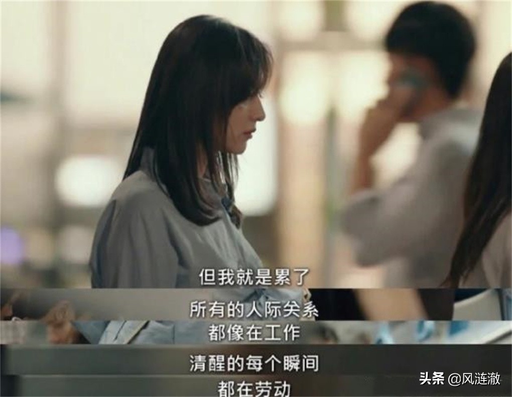 《我的出走日记》的台词充分反应了社畜的辛酸,几乎每一句台词都在诉说着很多打工人的真实境地,特别是那句“所有的人际关系就像在工作,清醒的每个瞬间都在劳动。什么事都没有发生,也没有人喜欢我,我似乎会这样度过漫长时光,最后枯萎死去。”