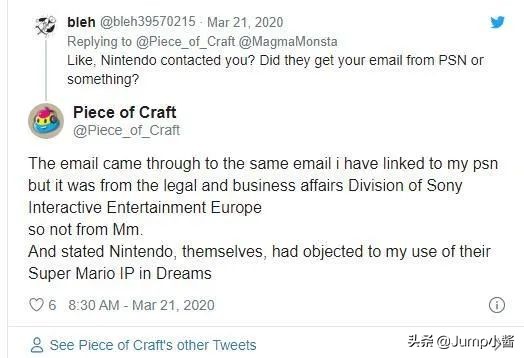 什么?任天堂对索尼发起了律师函警告?不知道大家有没有了解过一款在ps4上的沙盒游戏《dreams》,玩家可以在游戏中自由发挥创造,有玩家就试图在游戏中复原一个马力欧世界,却被任天堂喊了暂停。这位玩家在推特表示,自己收到了欧洲sie邮件,邮件中任天堂表示不许他继续这个马力欧项目。