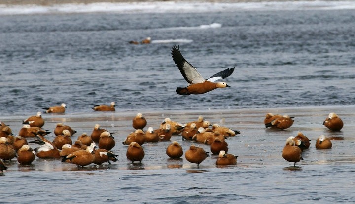 野鸭子的眼睛还有一“勤”就是不时在盯着周围,它们一旦发现不安全因素,就会立即启动翅膀飞往安全之地。