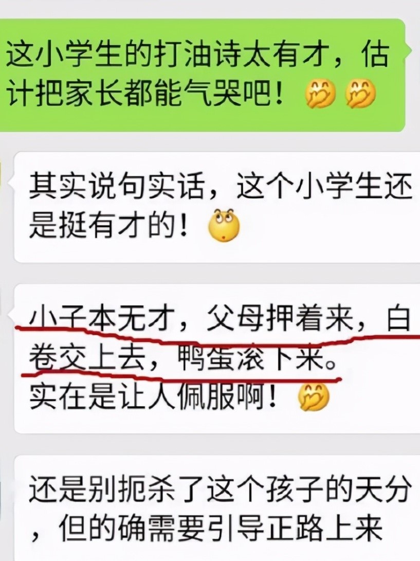 所以面对孩子搞怪的、调侃的“打油诗”别生气,多些鼓励、多些正向引导,就像那位被学生调侃上厕所的老师一样,简单回复一句:那不是我!多些理解和包容更好些,您说呢~