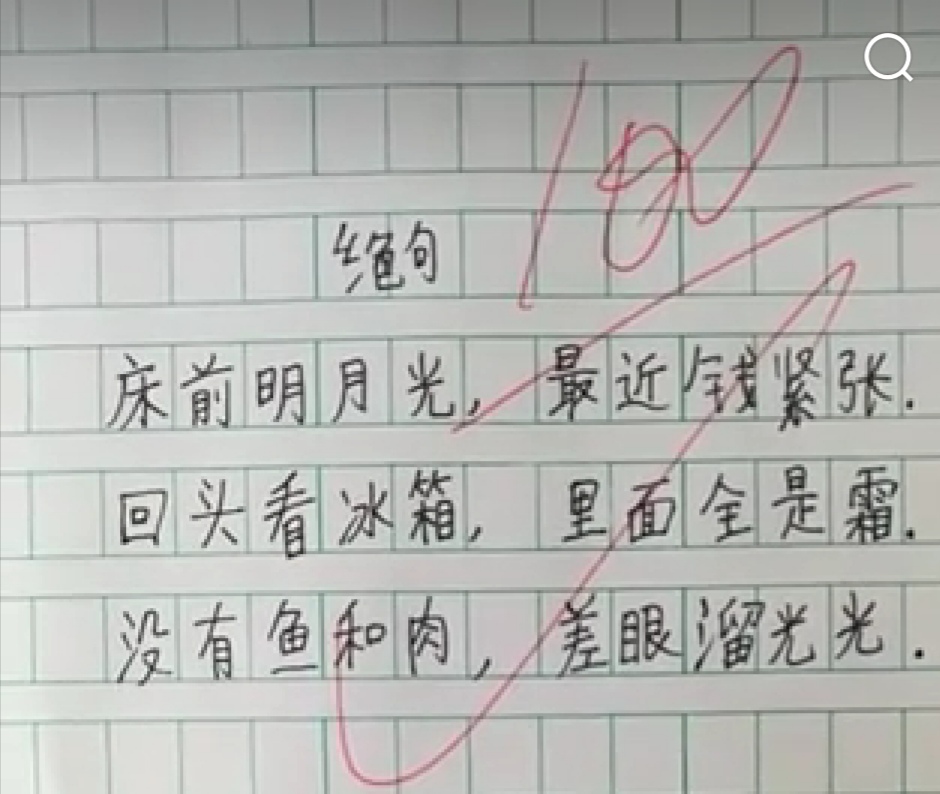 可谁能想到,小学的娃竟对这首诗进行了改编,改后的内容很意外,老师看完直摆手,不是我教的。