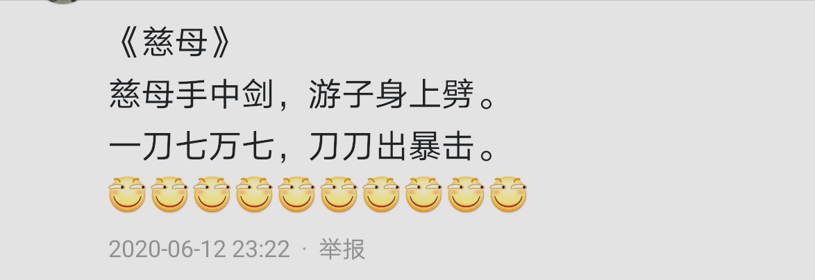 不知您看完啥感觉,俺看完半天没反应过来,原诗的温情和感动瞬间不翼而飞,变成了溜溜切克闹,咋看咋想笑,又有点可怜娃。