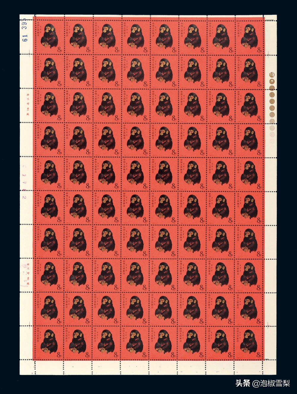 不过随着集邮的兴起,中国第一枚生肖邮票还是展现了它“龙头”的威力,从8分的面值一路涨到13000元,大版更是在近些年涨到了120万元的高位,成为八十年代至今,唯一位列中国珍邮行列的邮票。