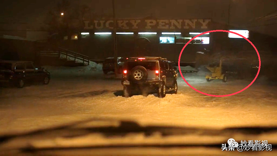 洛恩·马尔沃进入脱衣舞会所前,背景中有一台削木机,这是致敬电影《冰血暴》。