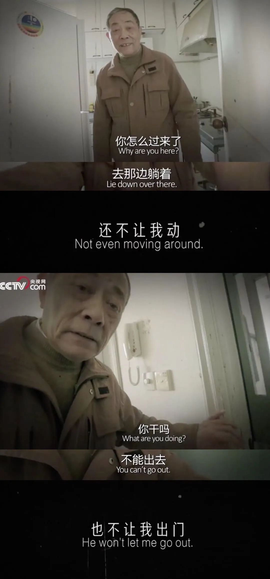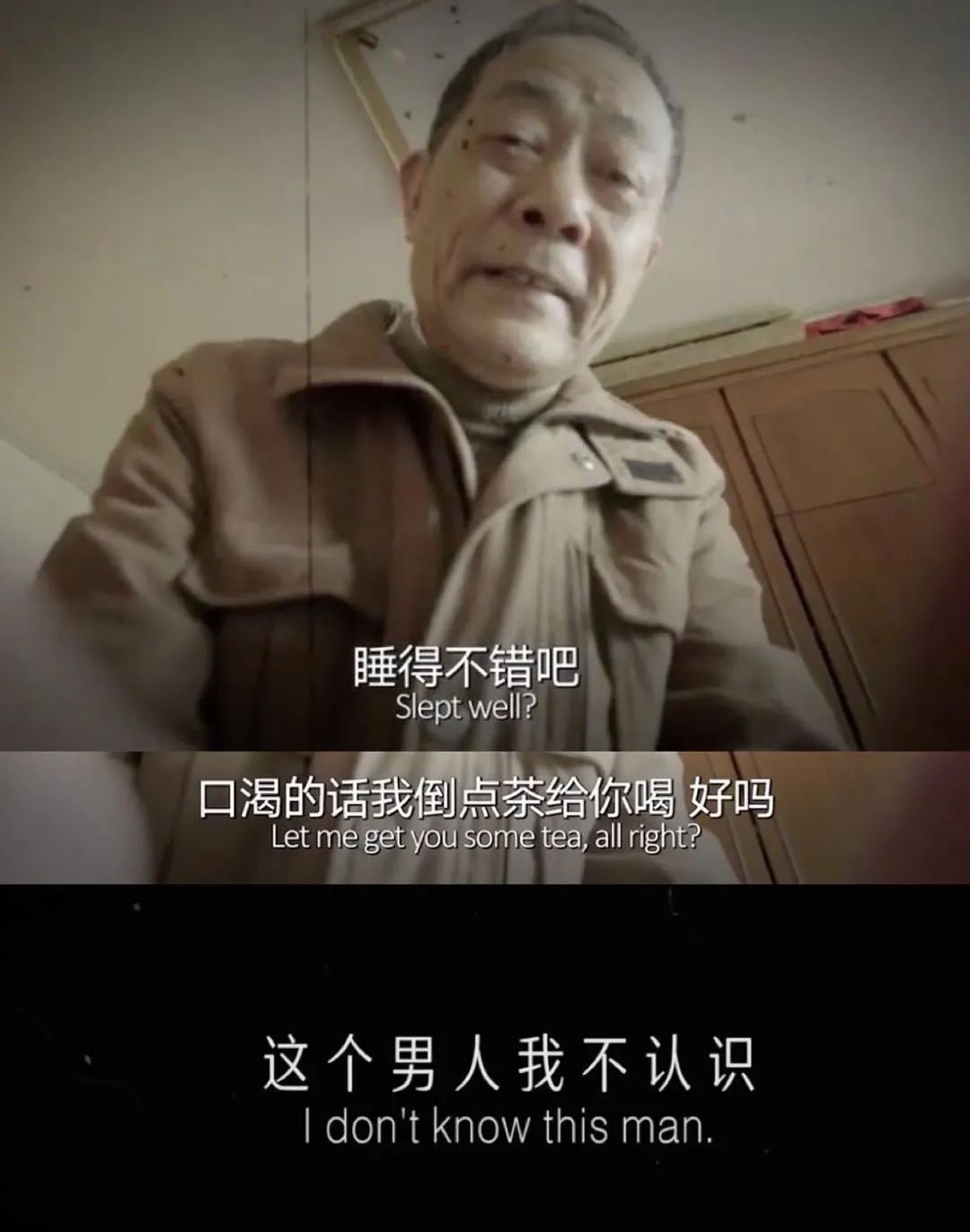 镜头是爷爷叫老伴起床的画面,然而字幕却打出:“这个男人,我不认识”。