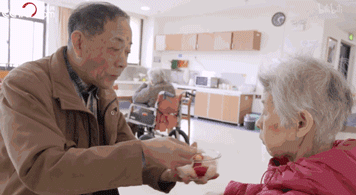 巢爷爷拿出精心准备的水果,一口一口喂给老伴吃。