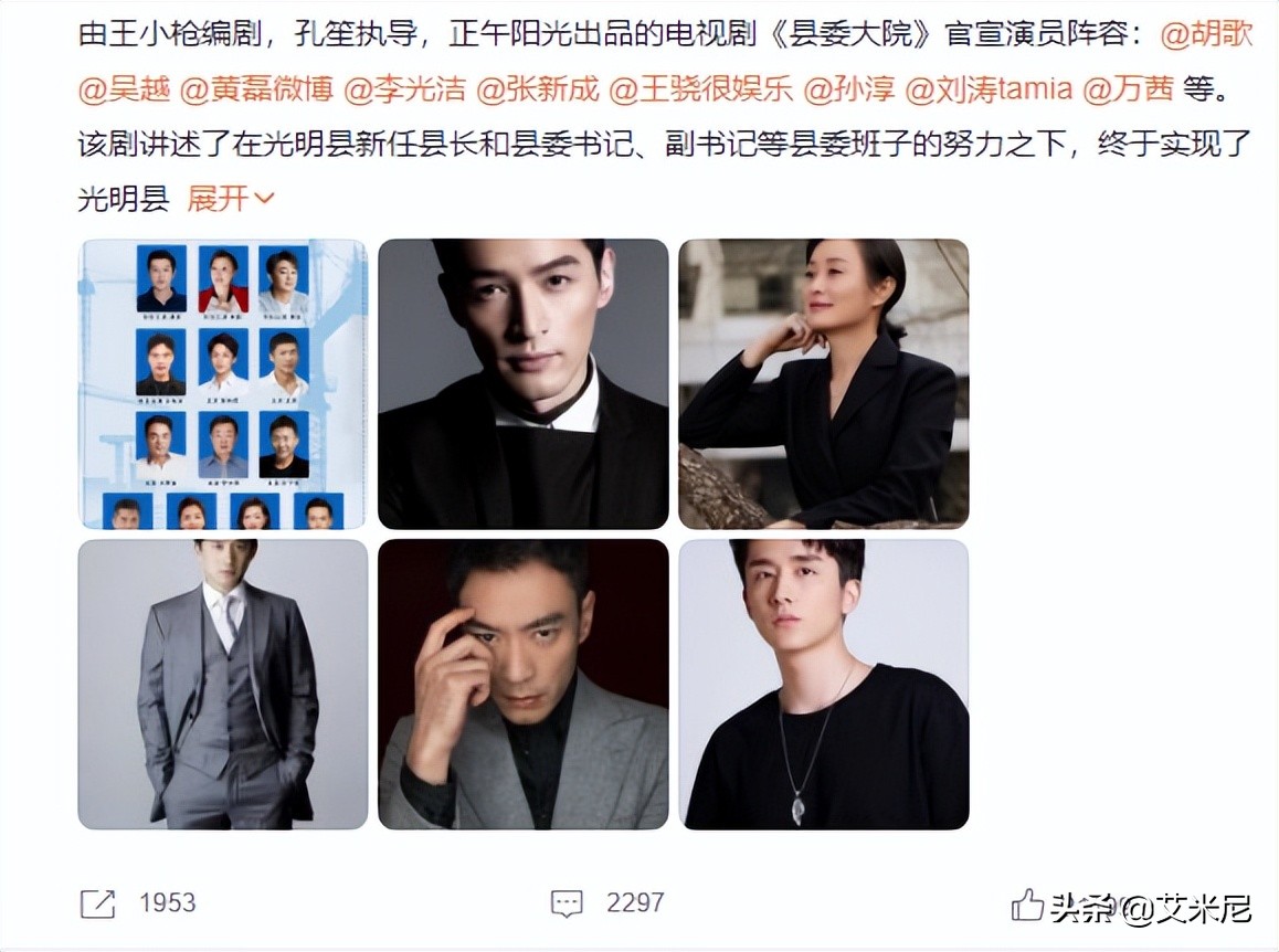 胡歌任县长,《县委大院》公布部分演员表,正午阳光和胡歌双保障