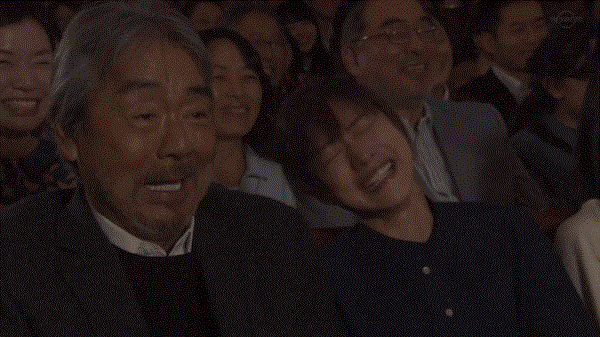 落语刚好讲到好笑的地方,旁边人都在哈哈大笑。