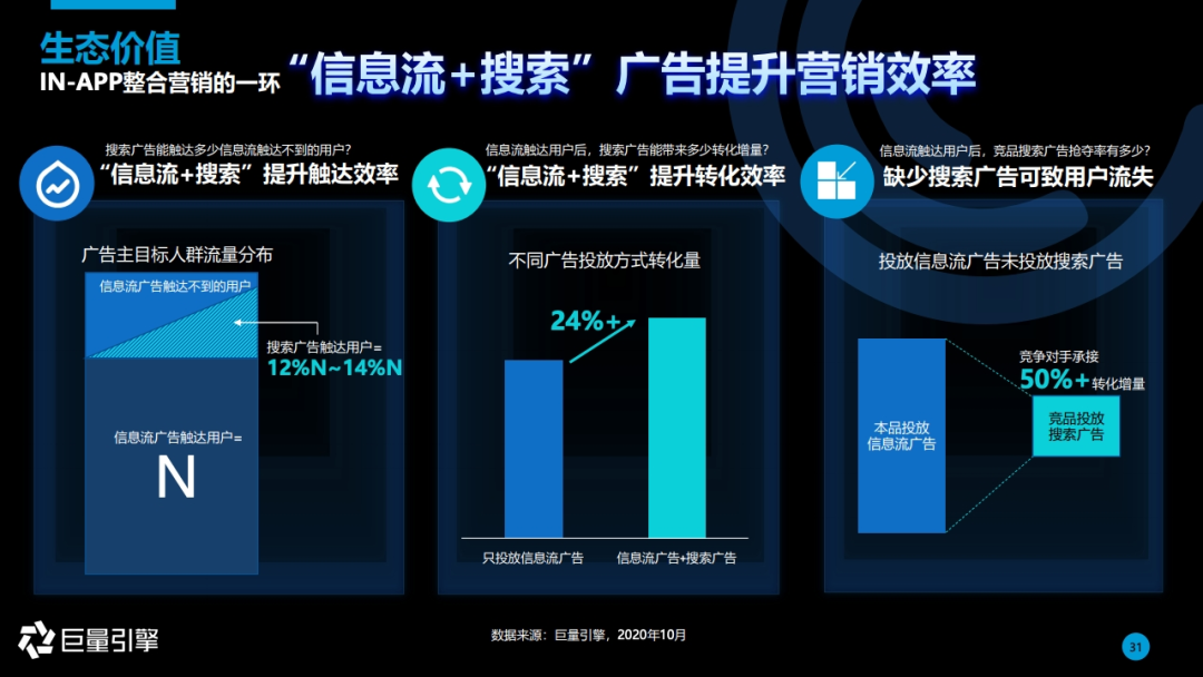 这份通案中明确指出,图文+短视频搜索广告是单一图文搜索广告转化率的2.5倍。还强调了搜索是内容传播的增量、是私域沉淀的增量、是广告转化的增量。