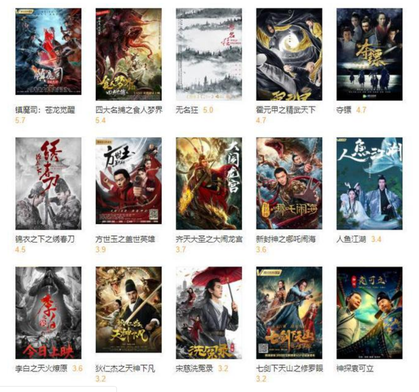 下面是我给大家找出来最近几年上映的武侠片,先不说质量如何,我们就光是看评分都已经劝退许多人,没有一部可以达到6分的及格线。