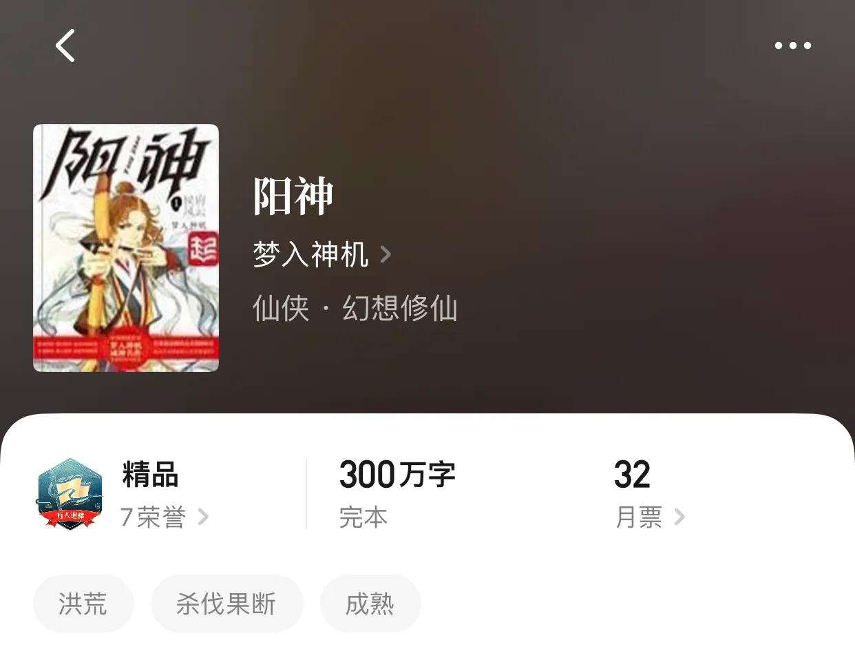 2,阳神。作者:梦入神机。