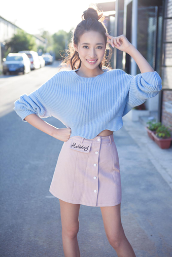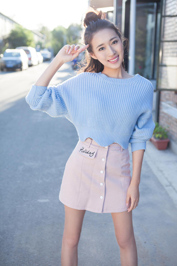 照片中的若寒扎着元气满满的半丸子头,蓝色蝙蝠毛衣,粉色a字短裙,沐浴着温暖的阳光,摆拍着各样俏皮可爱的姿势,显得格外的静谧唯美。看到女神若寒露出八颗牙齿的笑容,那一刻我们仿佛感觉时间都静止了。尽管现在早已进入了初冬时节,美女的笑容带来的依然是春风拂面的温暖。
