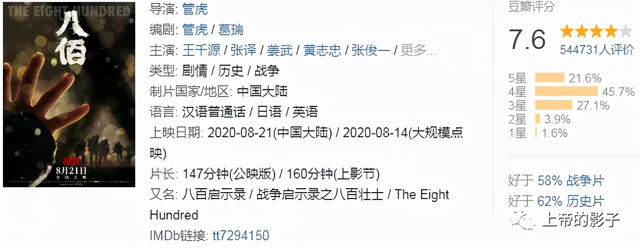 煽情也不是原罪。《八佰》用镜头还原了国家命运衰亡危机下的一群铁铮铮的民族义士背水一战,奋力抗争的不屈图景,谁不会为这段可歌可泣的战斗感动呢?历史为这部影片扣下的帽子,时间会给它摘下。